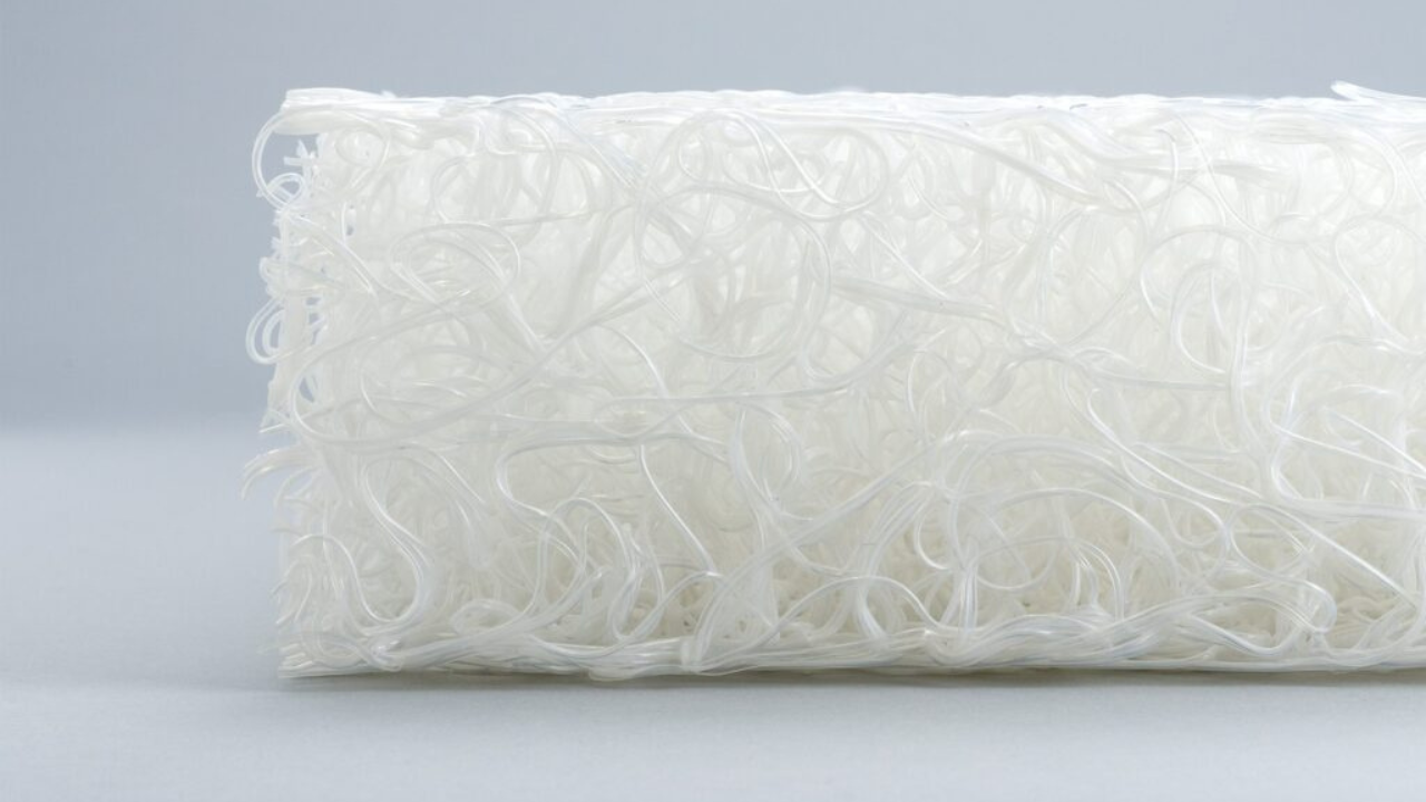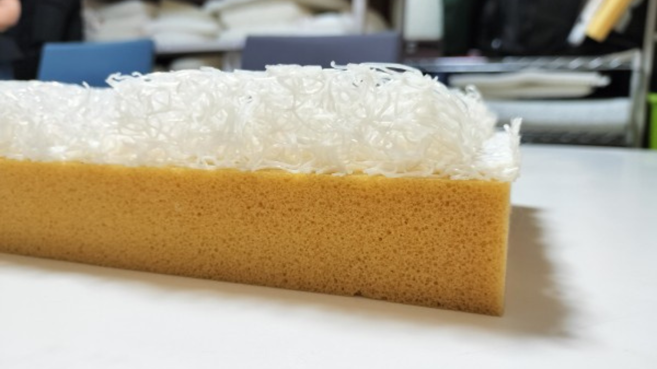 - ブレスエアー®は、ウレタンのような平らな接着面を持つ素材とは異なり、繊維が絡み合った立体的な構造をしています。