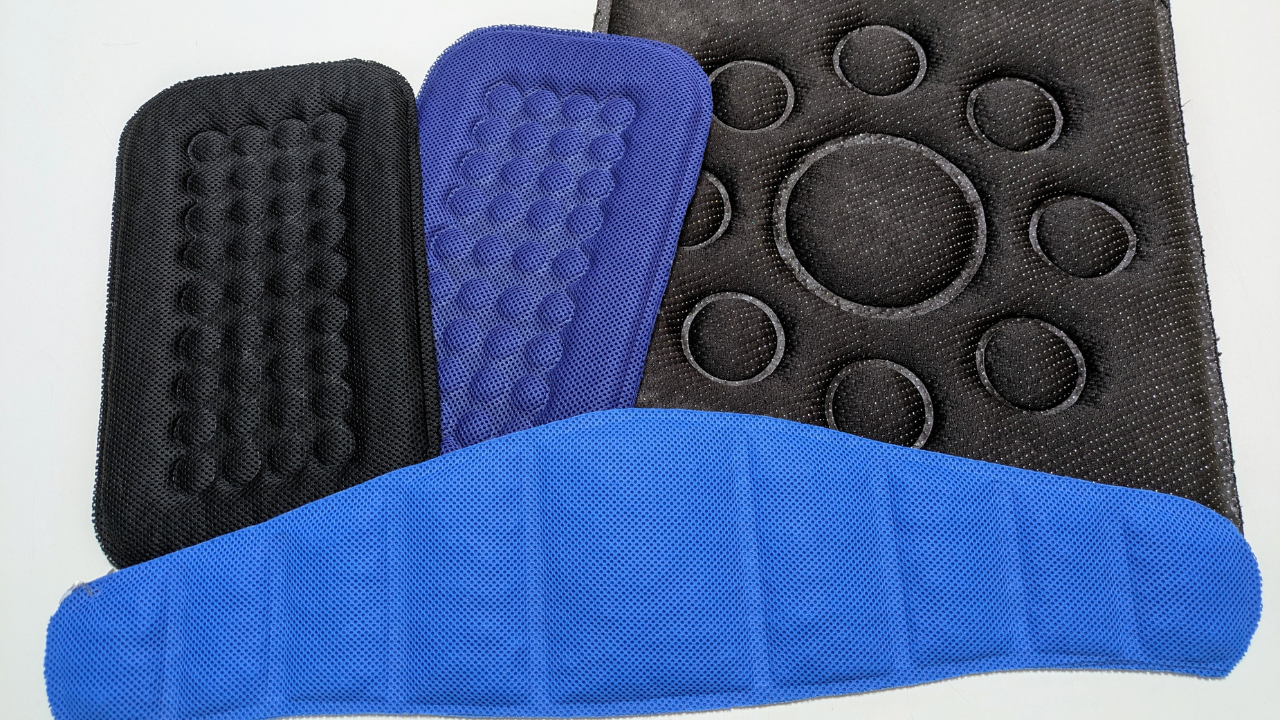 ・素材配置を確定した状態で熱プレス(ホットプレス)加工を施すことで、ブレスエアー®特有の構造でも接着位置と形状の安定性を確保