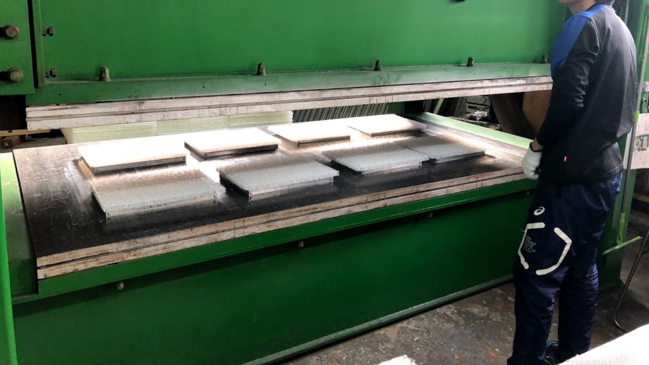 本加工は、縫製や複数工程を前提とせず、熱プレス(ホットプレス)加工を用いて一体構造を成立させることで、試作・検証フェーズにおける工程負担の軽減にもつながりました。
