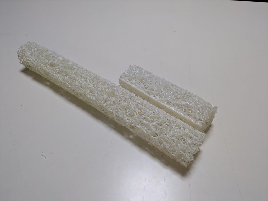 発泡ウレタンのような泡構造ではなく、樹脂繊維が立体的に絡み合ったネットワーク構造を持っています。